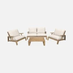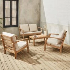 Salon De Jardin Bois Premium 5 Places Couleur : Bois / Beige
