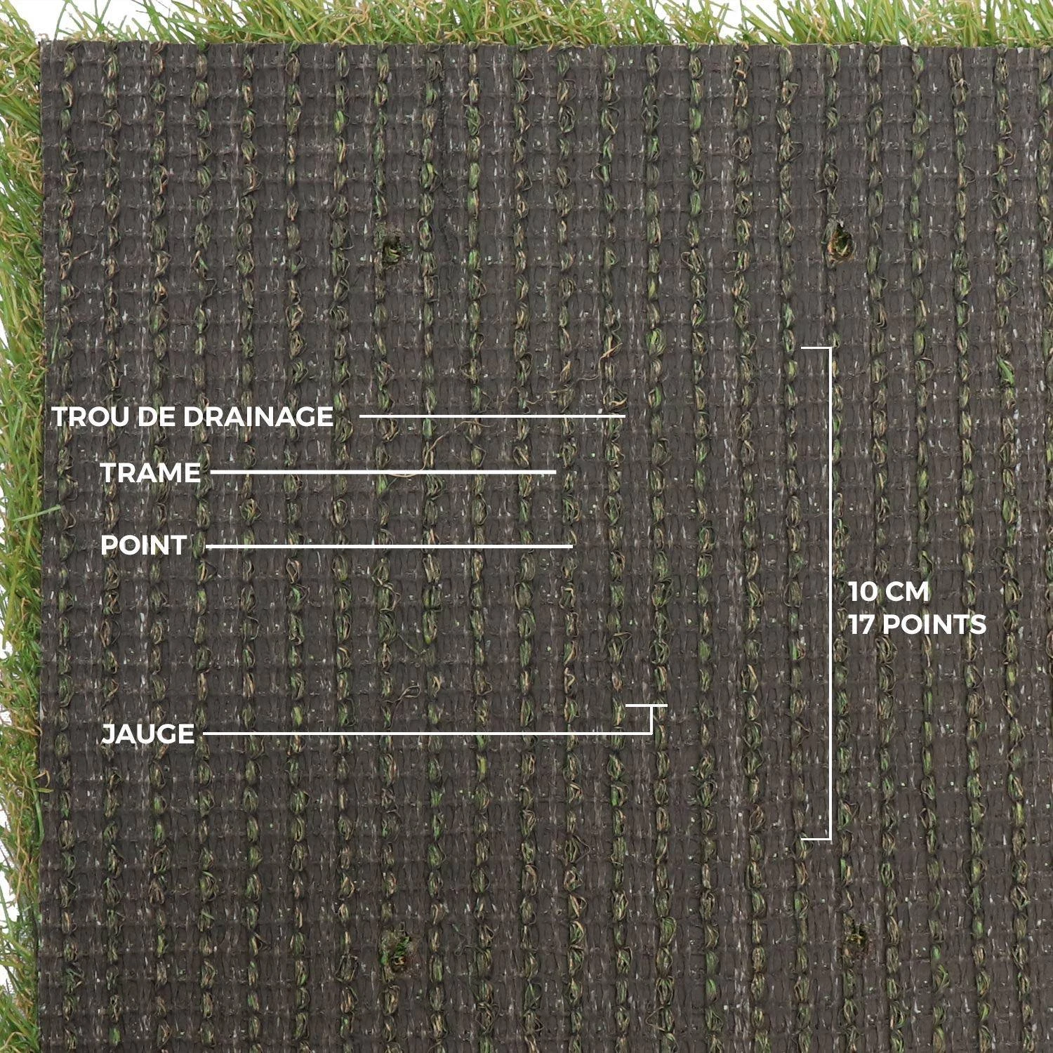 IdĂ©al pour un usage extĂ©rieur, ce gazon synthĂ©tique est Ă la fois confortable au toucher et visuellement attrayant. Non seulement, il constitue une excellente bordure pour votre piscine, mais il peut Ă©galement ĂŞtre utilisĂ© pour embellir votre patio, votre balcon ou votre terrasse ! Son traitement anti-UV lui permet de rĂ©sister facilement Ă l’usure, Ă©vitant ainsi toute perte de qualitĂ© au fil des annĂ©es ! Par ailleurs, des trous de drainage sont prĂ©sents tous les 10 cm pour une Ă©vacuation plus simple de l’eau !