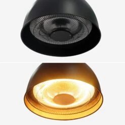 Lapland est silencieux, inodore et sécurisé. Sa tête chauffante comporte une grille de protection afin d’éviter les contacts involontaires et tout risque de brulure. Fabriqué en acier recouvert d’une peinture époxy, et doté d’un réflecteur en aluminium, ce parasol chauffant électrique est solide. Il s’accroche au plafond grâce au mousqueton et à la chaîne inclus. La hauteur peut être ajustée grâce à la chaine de 56cm.