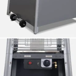 Simple et pratique, le parasol chauffant Sweden s’allume grâce à une pression sur son allumeur à impulsions. Ce dernier est alimenté par une pile. Sa porte en façade offre un accès rapide à la consigne de gaz. Il est, par ailleurs, équipé de roulettes pour être déplacé aisément.