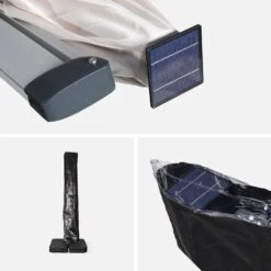 Grâce à ses bandes Led situées sur les baleines vous pourrez profiter de votre terrasse ou de votre jardin même à la nuit tombée. Lorsqu’il est éclairé, le parasol crée une atmosphère unique et chaleureuse. ll vous éclairera pendant 4 heures grâce aux led situées sur les baleines. La batterie se charge automatiquement grâce au chargeur solaire ou grâce à un chargeur micro USB.