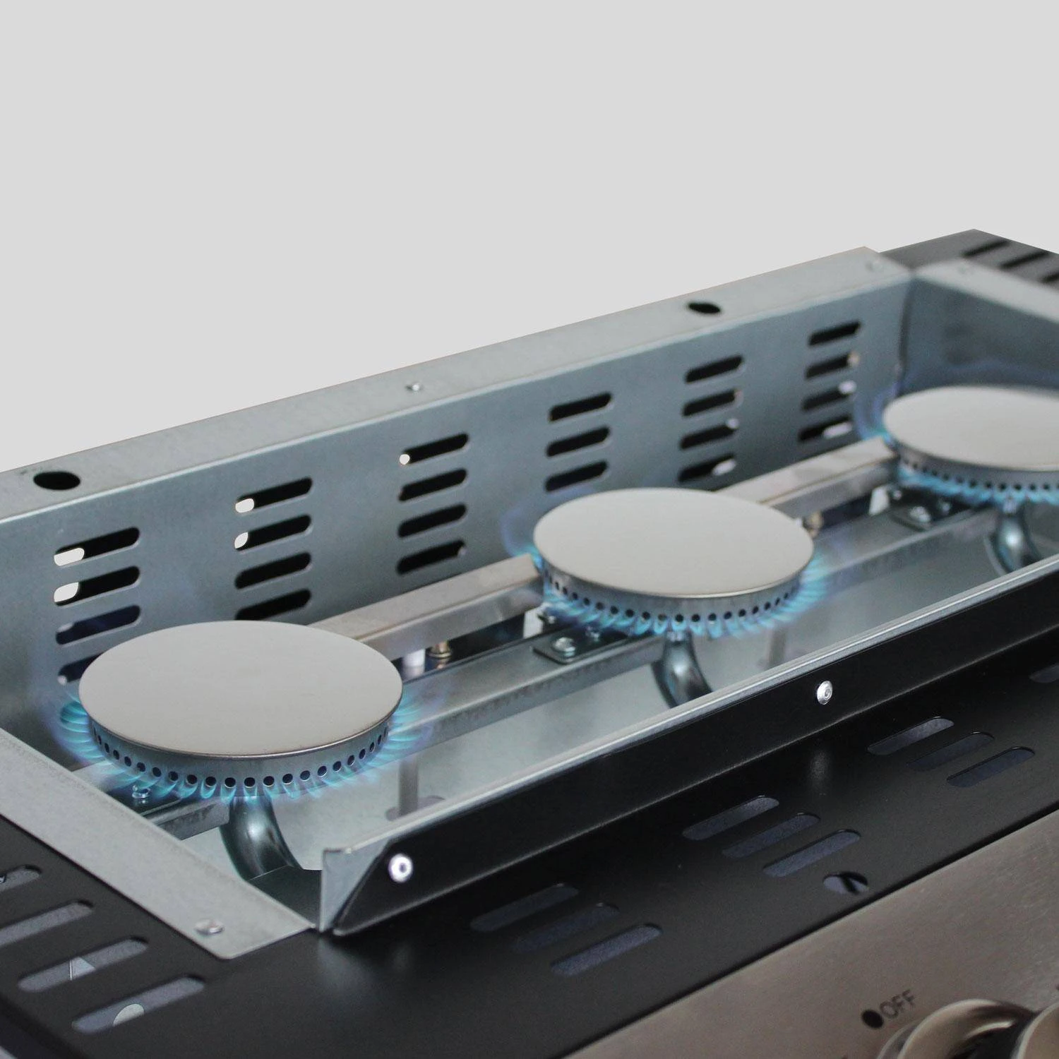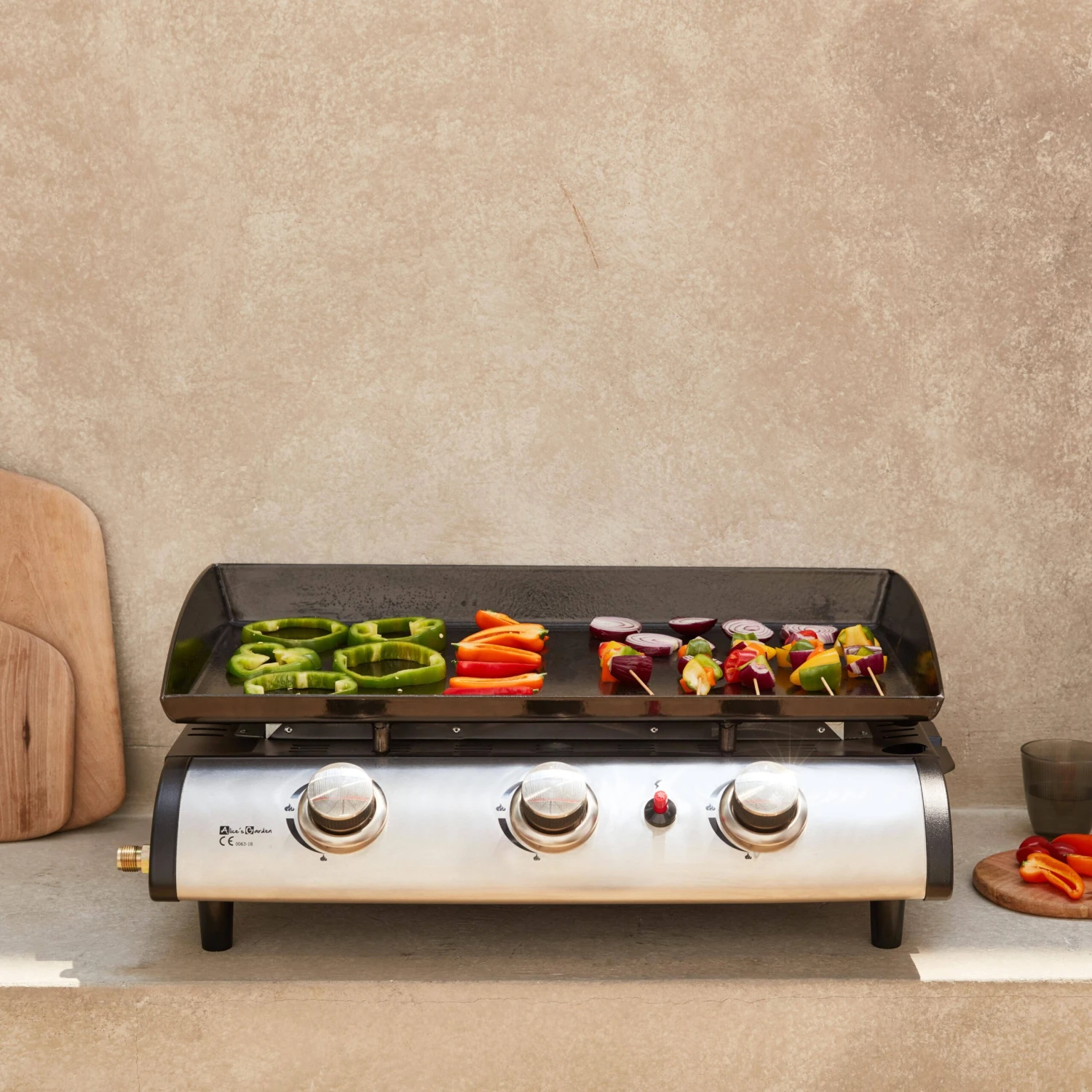 Parfaite pour varier les saveurs, saisir et caraméliser les aliments, la plancha Porthos est fiable et simple d’utilisation. Avec une façade et des brûleurs en inox, la plancha résiste à la corrosion. La plaque de cuisson en acier émaillé noir laminé à froid est amovible, sans démontage. Une plaque la sépare des flammes pour éviter qu’elle ne s’abîme et pour toujours mieux répartir la chaleur. Cela permet de bien cuire les aliments.