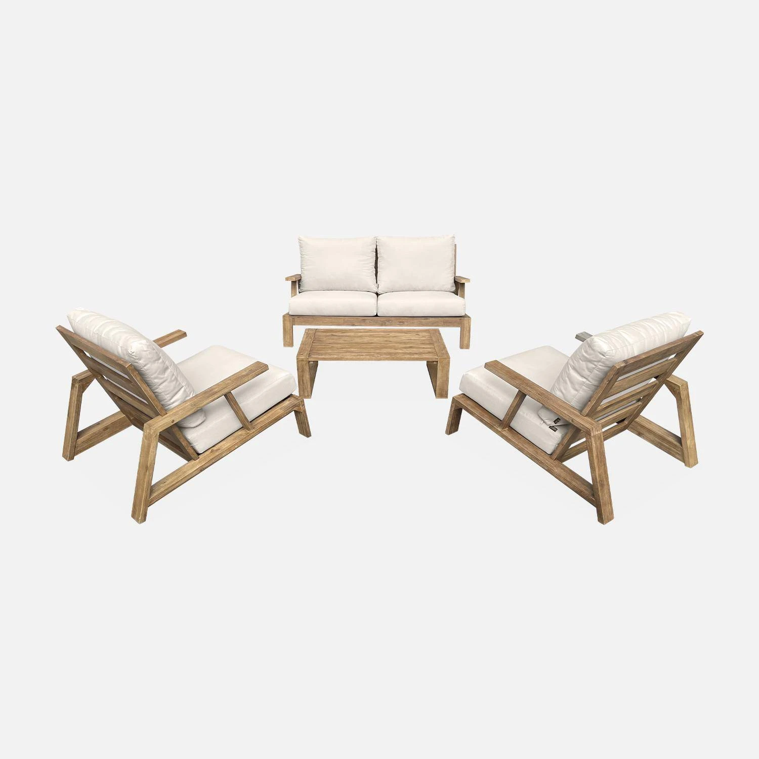 Capable d’accueillir jusqu’Ă 4 personnes, le salon Quito est idĂ©al pour profiter des belles journĂ©es d’Ă©tĂ© avec vos proches. ComposĂ© d’un canapĂ© 2 places et de 2 fauteuils aux dossiers lĂ©gèrement inclinĂ©s, votre confort y sera optimal, notamment grâce aux coussins Ă©pais de 18cm. Pour vous faciliter la vie, les coussins sont dĂ©houssables et rĂ©sistent aux intempĂ©ries grâce Ă leur housse en polyester. La structure du salon de jardin Quito est en bois d’acacia, ce qui offrira un charme rustique Ă votre extĂ©rieur, tout en restant design, grâce Ă ses lignes gĂ©omĂ©triques Ă©purĂ©es.Â