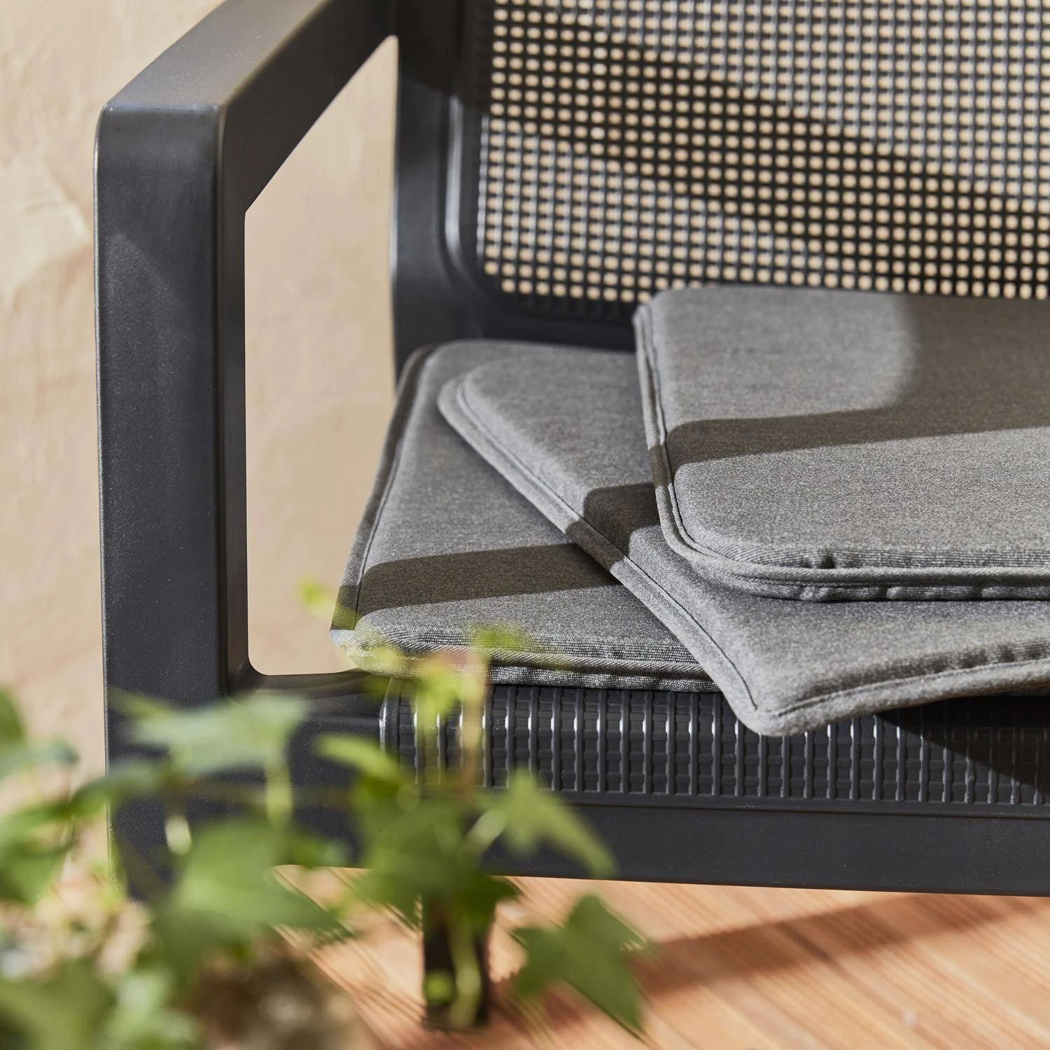 Les assises de ce salon permettront d’accueillir 4 convives, idéal pour un apéro entre amis. Aucune matière sensible, il sera donc très facile de l’entretenir. Sa couleur graphite est tendance et s’accomodera à tous les styles. Enfin, afin de gagner de la place, les fauteuils sont empilables.