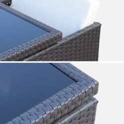 Voici un salon de jardin en résine marron pour 8 personnes. Ce salon prend très peu de place lorsqu’il n’est pas utilisé car il est encastrable, et vous pouvez même y laisser les coussins lors du beau temps. La structure en acier galvanisé permet d’obtenir un salon de jardin léger, facile à bouger, notamment les chaises qui sont en plus dotées de poignées. De plus, cette matière est robuste et non corrosive. Dans une question d’esthétique, la structure est également recouverte de résine plate. Les quatre verres trempés, de 5mm d’épaisseur, apportent une finition élégante à la table.